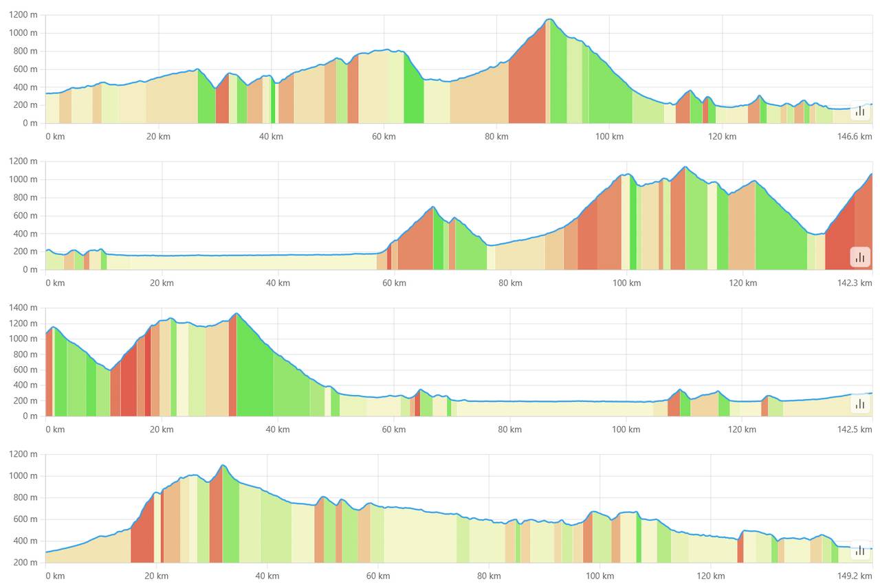 Gegenüber 2025 ist die Strecke kürzer und deutlich bergiger, der höchste Punkt der Etappe ist an jedem Tag über 1100 m