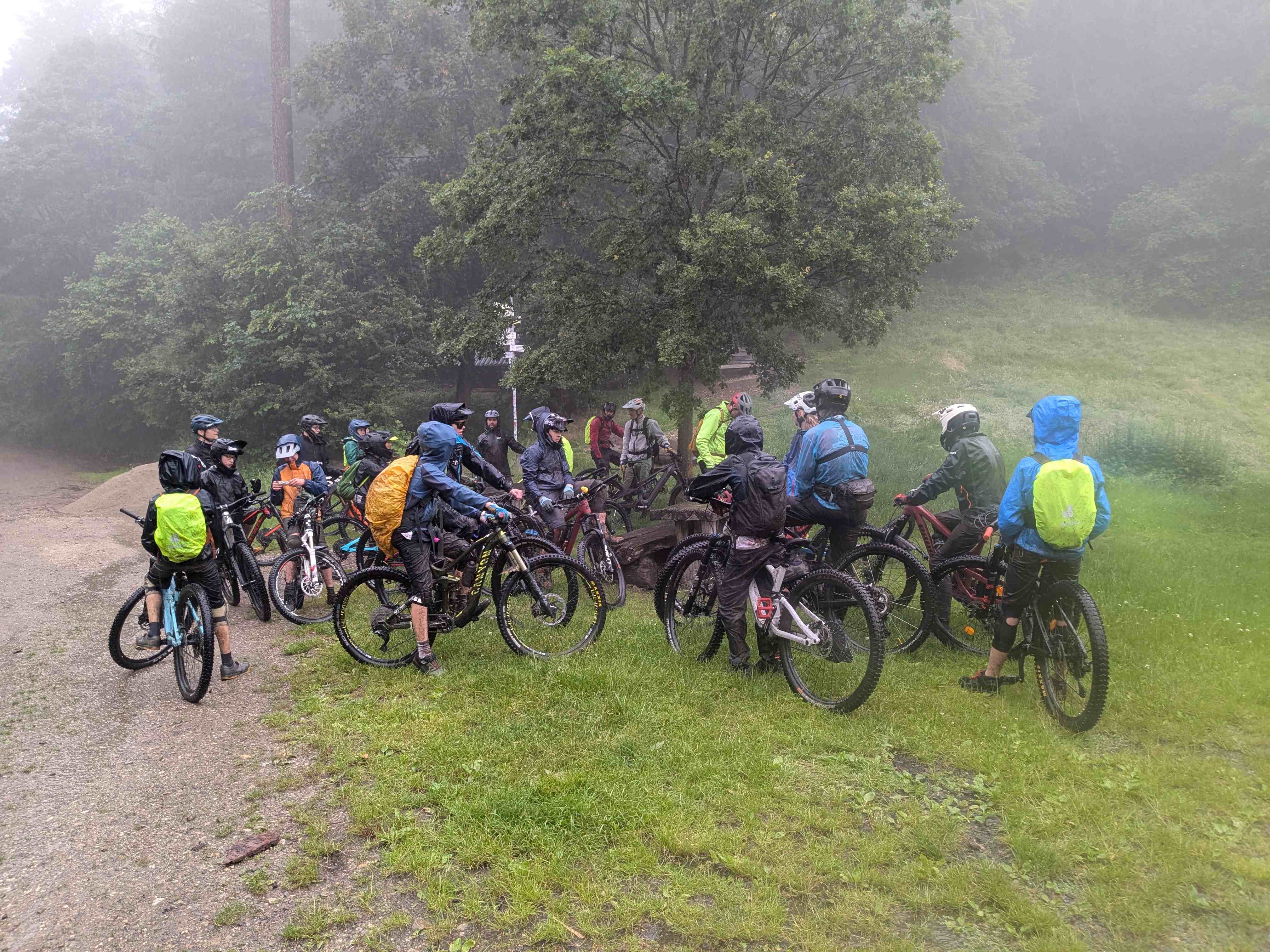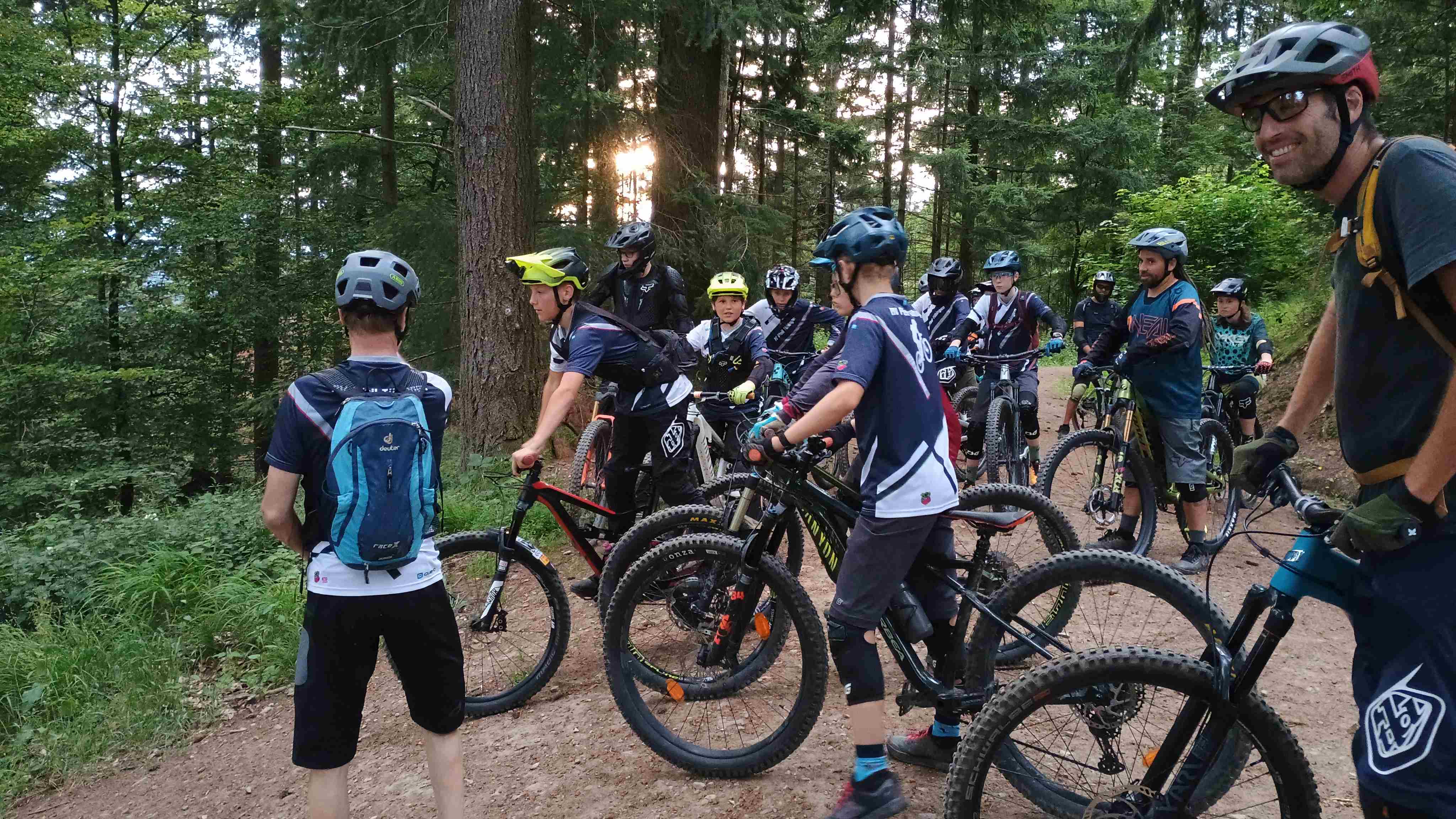 Auf den einzelnen Sektionen unterschiedlichen Charakters und Schwierigkeit wurden unsere Sportler von Simon und Max, die die Trails gut kennen eingeführt. Idealerweise kann jede Sektion individuell wiederholt werden, ohne ganz nach unten fahren zu müssen. Das Wetter meinte es noch gut mit uns und die Stimmung war dementsprechend super.