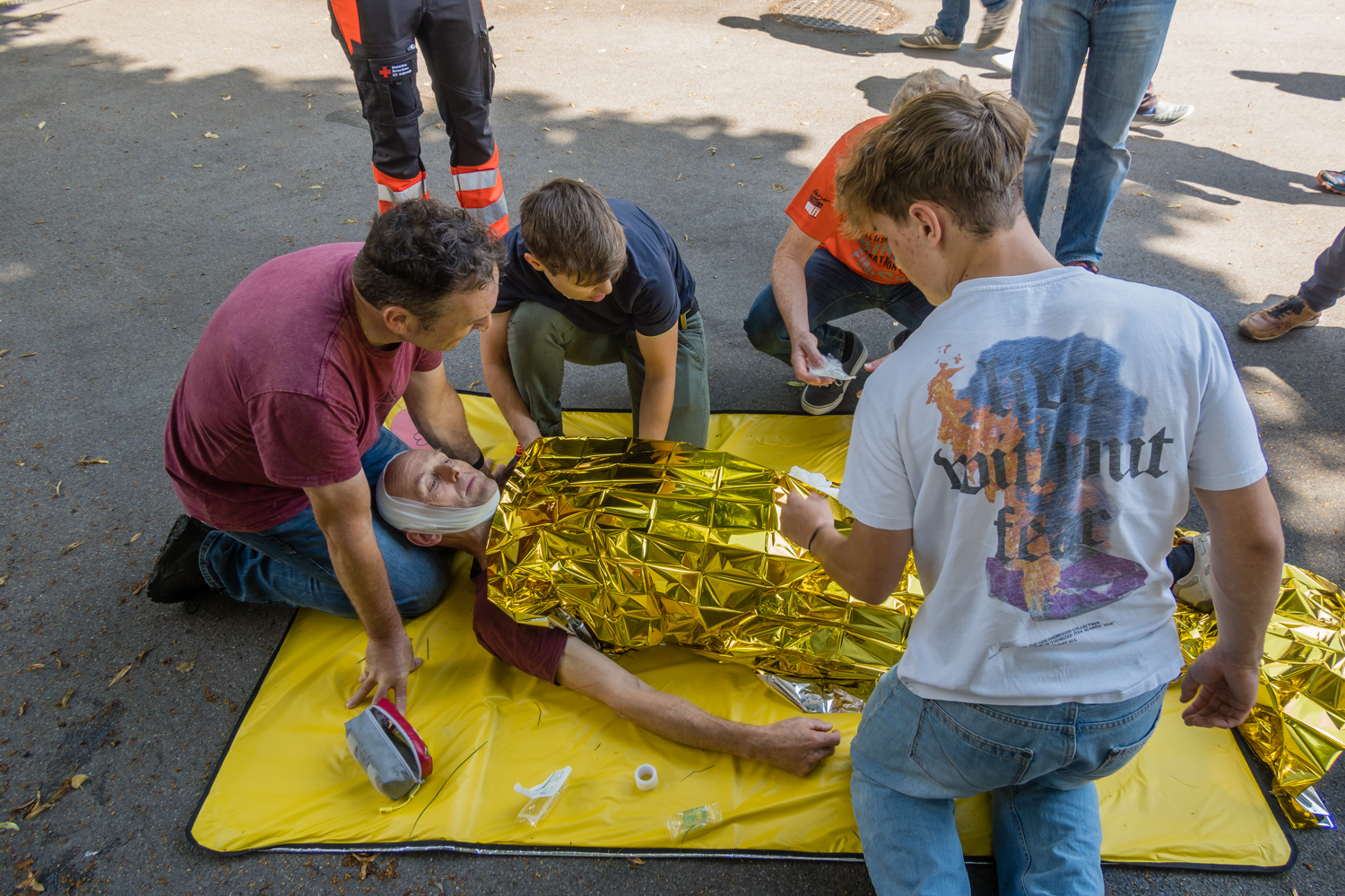 Dann ging es weiter mit Übungen zum Ansprechen, Lage einschätzen und Stabilisieren