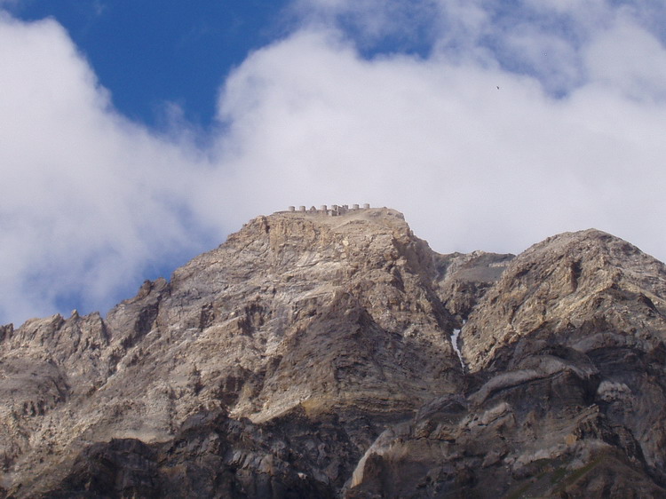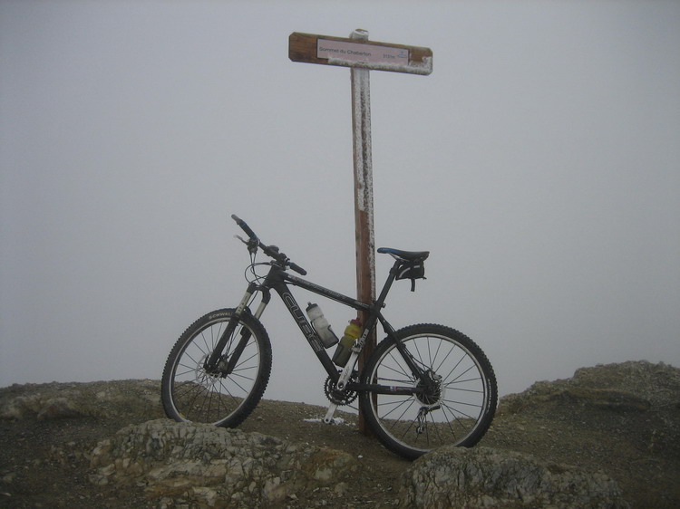 Die Königsetappe beginnt bei leichter Wetterberuhigung auf vorerst fahrbarer 72-Serpentiniger Militärstraße. Nach fünf Kilometern endet die Straße in verblocktem Gelände und unser Lieblingssport steht wieder auf dem Programm: Schieben mit kurzen Unterbrechungen durch Tragen. Kurz vor dem Pass beginnt es bei 3 °C zu graupeln wodurch sich die Gelegenheit zum Umziehen und zu einer Diskussion betreffend des Abbruches der Veranstaltung bietet. Ergebnis: Boris und Klaus stellen die völlig deplazierten Bikes in einer Serpentine ab; Andreas muss sein Rad für den Fototermin mit nach oben nehmen. Auf dem fast naturbelassenen Gipfel des Mont Chaberton erwarten uns neben acht Geschütztürmen der höchste „anfahrbare Punkt“ der Alpen (3.131 m).