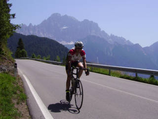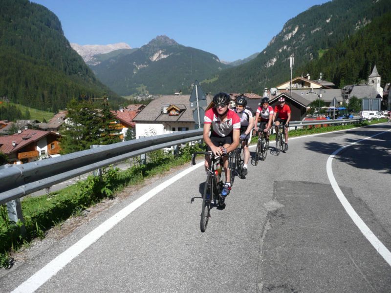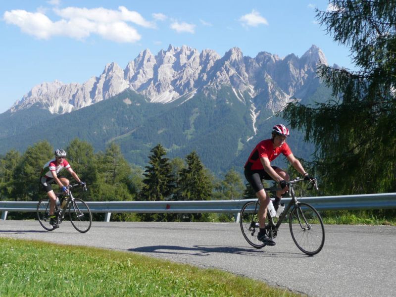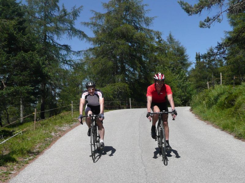 Auf der 4. Etappe ging es von unserer höchst gelegenen Unterkunft in Toblach auf dem Ratsberg, mit zahlreichen über Nacht produzierten neuen roten Blutkörperchen, nach Alba di Canazei. Bei Steffen und Armin hat anscheinend die Höhenluft am besten gewirkt, da sie beschlossen vor den anderen aufzubrechen und die Extratour zu den Drei Zinnen zu fahren.