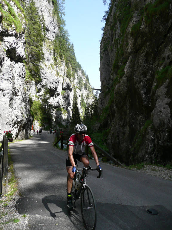 ![]() Eine willkomene Abkühlung beim Anstieg zum Fedaiapass brachte der Weg durch die imposante Sottogudaschlucht. |