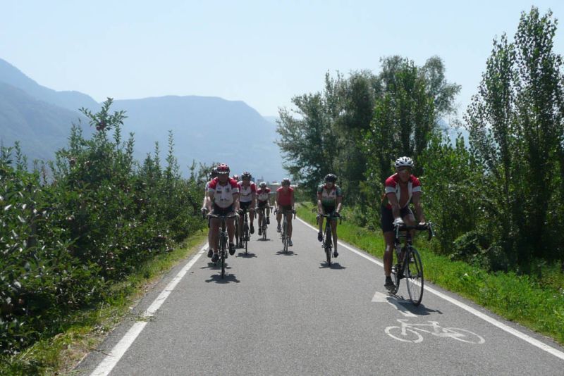Von dort ging es entlang von Weinstöcken und Obstplantagen zur ersten Verpflegungsstelle nach Eppan.