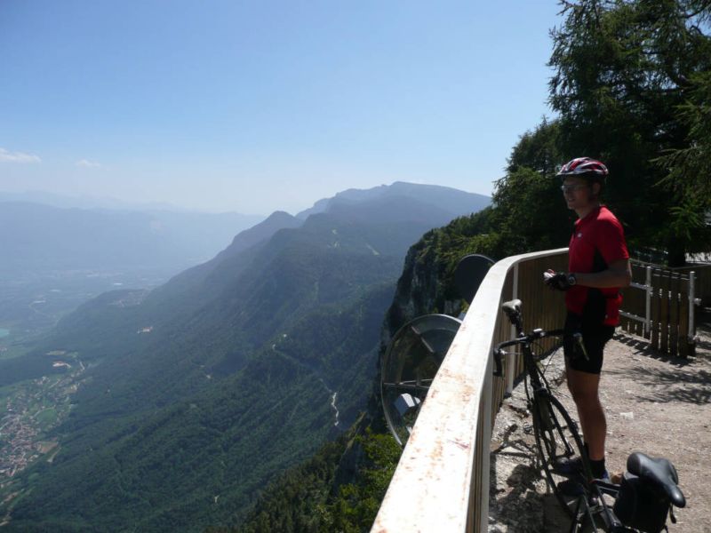 ![]() Matthias auf dem Penegal, unten ist die Straße zum Mendelpass zu erkennen |