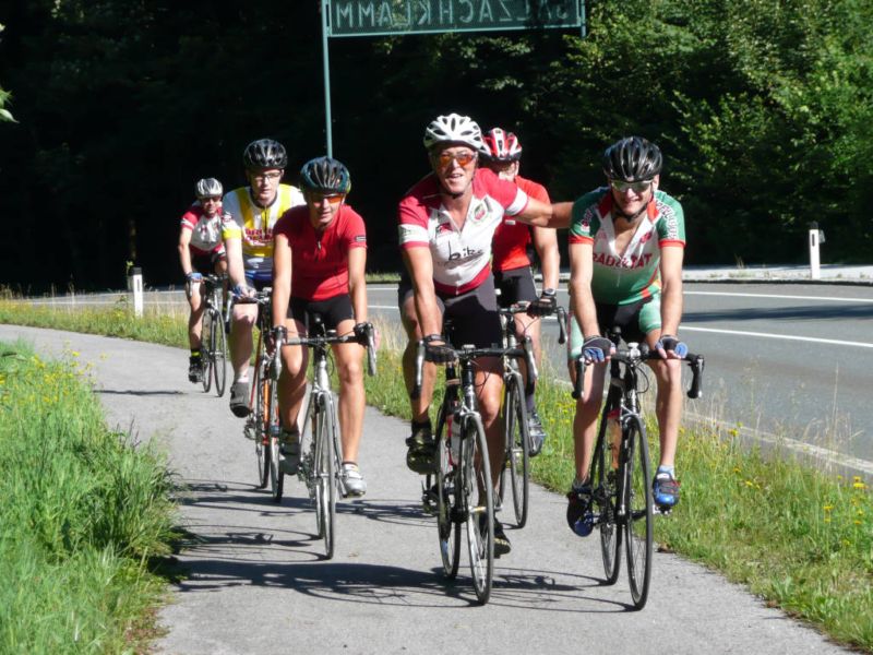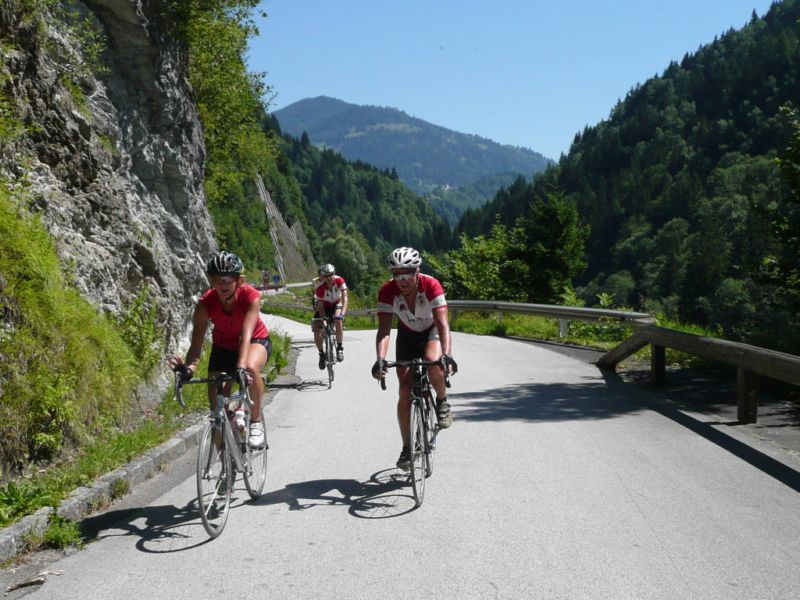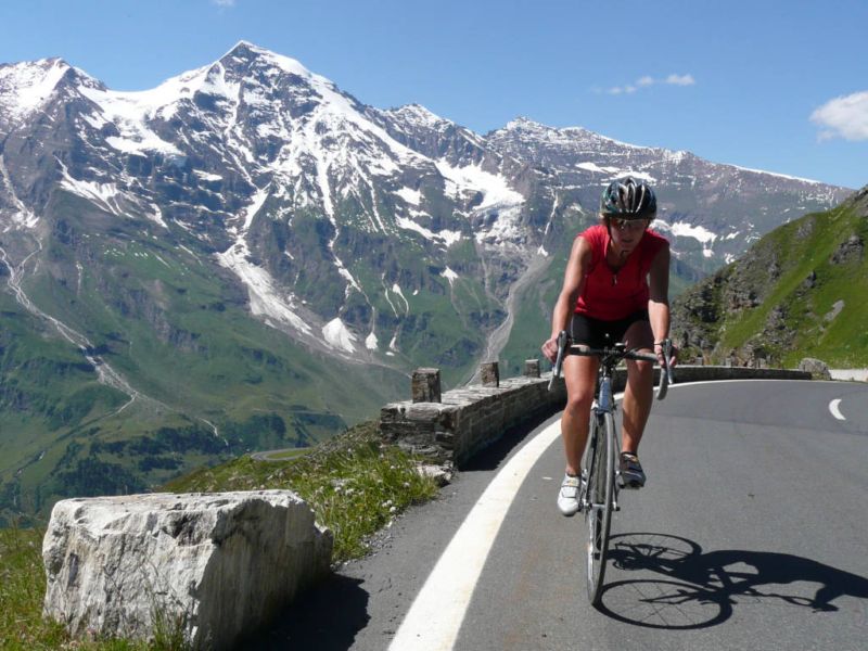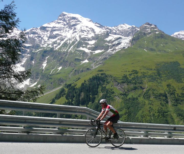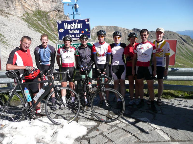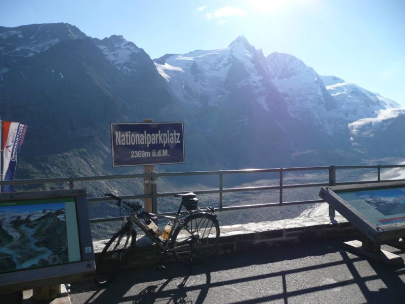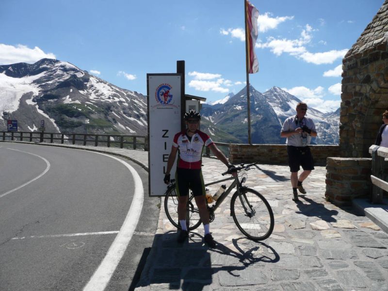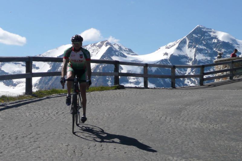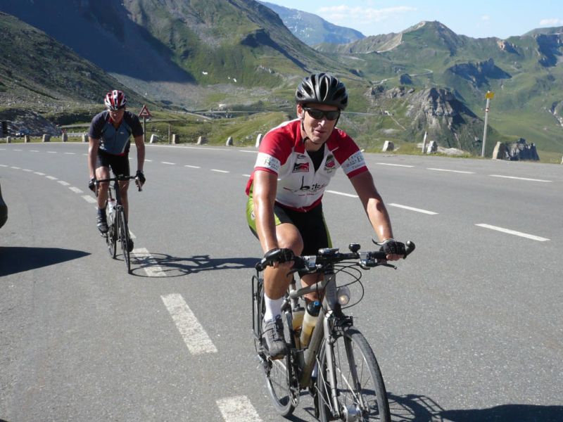 Doch es liegen weitere 250 HM vor uns. Am Hochtor auf 2504 m Höhe machen wir noch ein kleines Fotoshooting.Dann geht’s endlich wieder abwärts. Für fast alle, außer Armin, denn man könnte ja noch zur Franz- Josefs- Höhe hinauf.Dies bedeutet weitere 505 HM auf acht Kilometern. Auch ein toller Blick auf den Großglockner kann keinen der anderen Fahrer überzeugen, Armin zu begleiten.Wir anderen düsen weiter abwärts nach Heiligenblut, wo im sehr netten Jugendgästehaus das Essen schon so gut wie auf dem Tisch steht.Abends vertreten wir uns noch die müden Beine bei einem Spaziergang mit Großglockner Blick und freuen uns beim Radler auf den nächsten Tag.