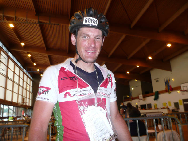 Aber dann ist endlich der große Kreisverkehr erreicht, einige Zuschauer klatschen im Zielbereich. Ich gehe in die Turnhalle, ziehe um 14:17 Uhr die Magnetkarte durchs Lesegerät und bekomme den letzten Stempel in meine Kontrollkarte: