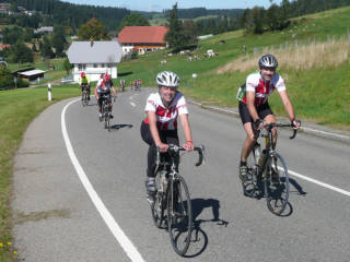 Weiter gings auf dem schönsten Anstieg zum Kniebis hoch und weiter über die Alexanderschanze Richtung Zuflucht, wo wir auf der Schwarzwaldhochstraße und an der Bergwertung ein zweites mal den Radprofis zuschauen konnten. Auf dem Rückweg wardas Tempo dann deutlich flotter auf oft abfallender Strecke über Freudenstadt, Glatt, Dießener Tal und Neckartal.