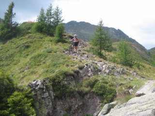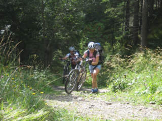 Ein Super Downhill beginnt. Viel Technik und manchmal auch Speed. Andreas besteht auf beidem. O.K. In Pfunders gibt's Kaffee, Apfelstrudel und Vanilleeis. Nach gemütlicher Fahrt -dank GPS mit mörderischem Umweg- kommen wir in Kiens (bei Bruneck) an. Klasse Pension, tolle Pizzen und intellektuell hochwertige Unterhaltung.