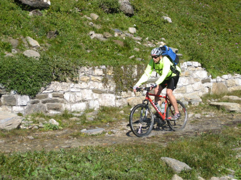 Zitat von Achim am Vorabend: "Mein Polar weckt." Danke Achim! Es ist schon acht. Nach leckerem Frühstück mit herzfreundlichem Kaffee folgt ein leichter Uphill zum Schlüsseljoch. Bei bestem Wetter folgt die erste -und sicher nicht die letzte- Grobschotterabfahrt der Tour.