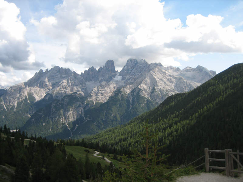 Nachdem sich Alle mehr oder weniger erholt haben, geht es über Schotter ins Tal nach Schluderbach. Von dort folgen wir dem Radweg nach Cortina d' Ampezzo. Gediegene Unterkunft in Pocol. Es regnet.