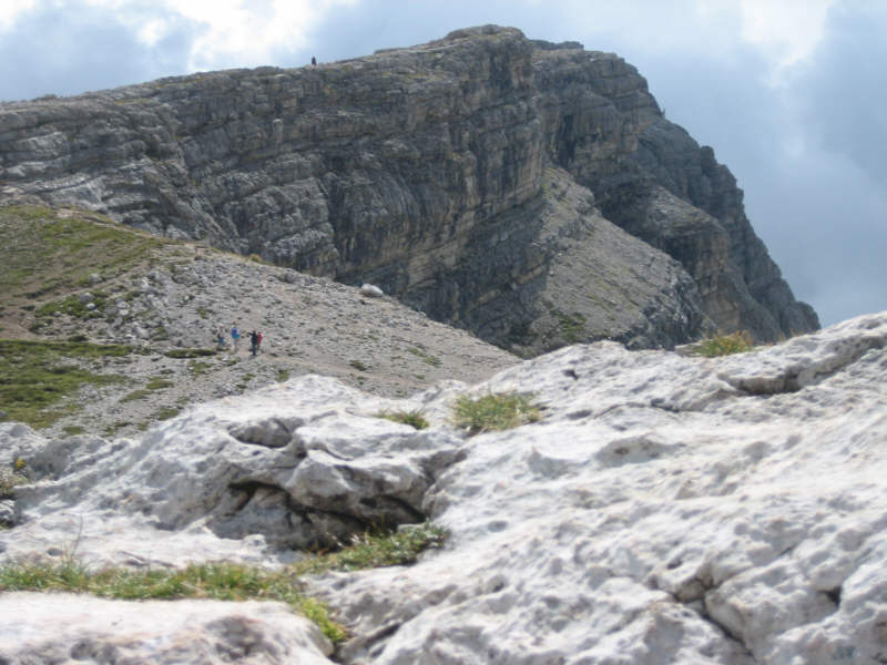 Am Hotelausgang trennen sich die Wege erneut: Andreas S. fährt nach Bruneck zurück. Alle anderen rollen auf beliebig steilem Asphalt zum Rifugio Chinque Torri. Es folgt eine Schiebepassage zum Rifugio Forc Nuvolao.