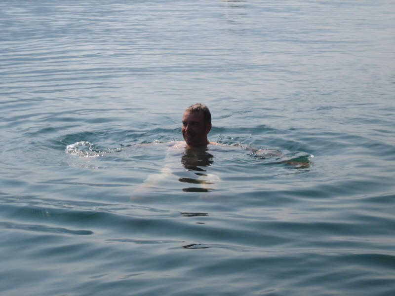 Noch ein letztes Mal morgens den Rucksack zusammenpacken. Los geht's auf dem Radweg nach Riva. Aber nicht, ohne noch ein letztes Mal Rad und Fahrer auf Vibrationsfestigkeit zu testen. Am Gardasee angekommen versucht Achim den See zum Überlaufen zu bringen. Aber ohne Erfolg.