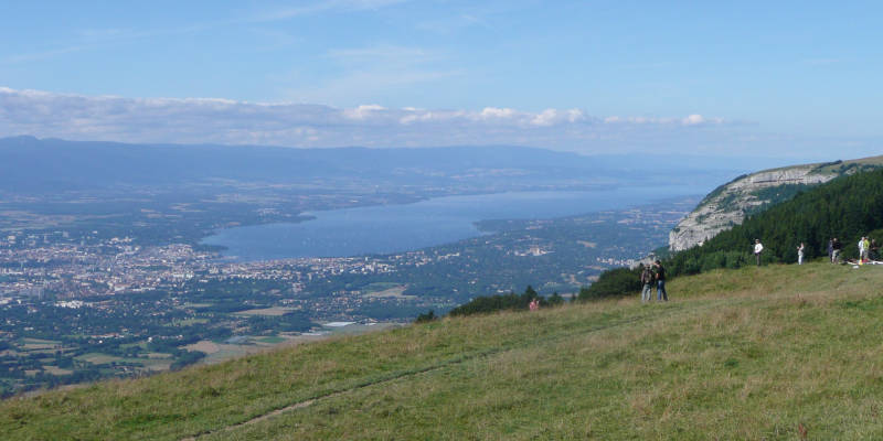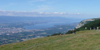 ![]() Vom Südwestgipfel des Mont Saleve hat man auf der sehr verkehrsarmer Strecke nochmal eine schöne Aussicht auf Genf und den Genfer See |