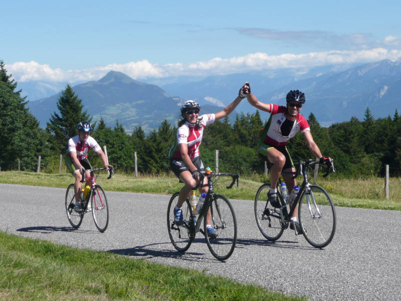 Auf dem Mont Saleve (1290 HM) stellt Andreas fest, dass seine Laufräder der Belastung am Berg nicht standhalten und so wird er das erste Mal ins Auto gezwungen, um einen Radladen zu suchen. Wir anderen genießen den schönen Blick auf Genf mit unzähligen Drachenfliegern am Himmel.