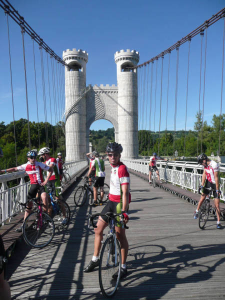 Nach der Abfahrt geht es über die alte Hängebrücke „Pont de la Caille“ gemeinsam nach Annecy. Armin erspart uns den mindestens 20% Anstieg des Fußweges zur Jugendherberge an der Route du Semnoz, wir fahren gemütlich die Straße hinauf.