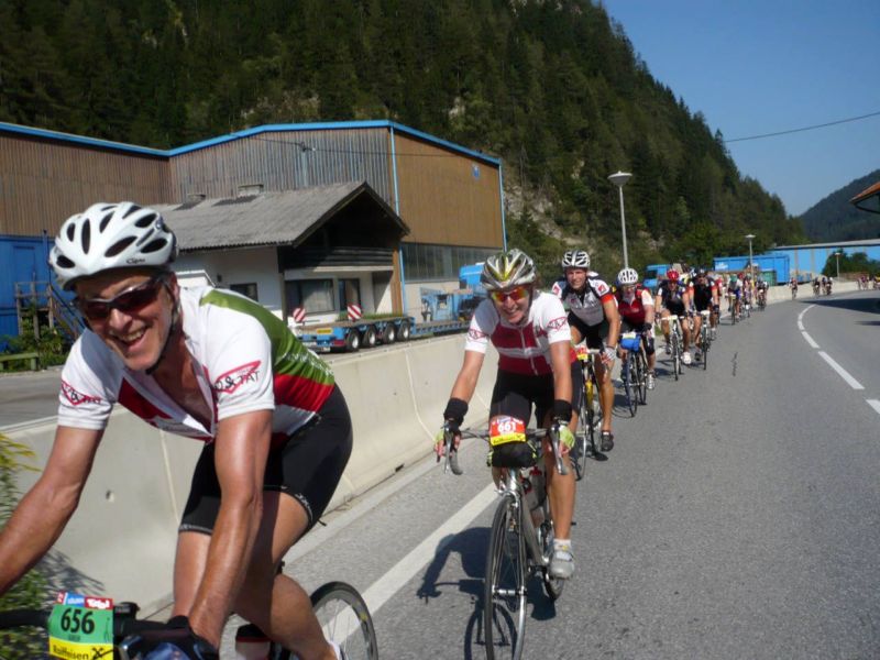 Dass wir im selben Trikot fuhren und damit offensichtlich zusammen gehörten, war einem Mitfahrer dabei total egal und er versuchte ganze dreimal mich von Klaus Hinterrad wegzudrücken. Von hinten kam plötzlich eine bekannte Stimme und Armin war bei uns. Zusammen erreichten wir den Brenner und hatten bis dahin immerhin noch einen 29er Schnitt!