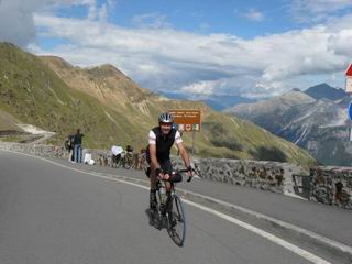 | Gut entspannt und erholt sind wir heute zum zweithöchsten Pass der Alpen, dem Stilfser Joch (2757m) aufgebrochen. Doch zunächst konnten wir am Reschensee und an der Etsch entlang die wunderschöne Landschaft bei leichter Talfahrt genießen und uns einrollen. Nach einer Stärkung in Prad ging es dann mit spürbarem Respekt auf den langen Anstieg: 24 Km und 1840 Hm. Das diese Nordostseite zum Pass als sehr schwer eingestuft ist, war besonders ab der Franzenhöhe / Kehre 22 mit bis zu 15% Steigung deutlich spürbar. Aber auch Kehre 48 war irgendwann (ohne schieben) erreicht und die Freude auf dem „Joch“ groß. Abwärts ging es über den Umbrailpass (2501m) nach Sta. Maria ins Val Müstair. Leider haben wir das Stilfser Joch – Passschild nicht gefunden und uns mit einem Foto auf dem Umbrailpass begnügen müssen. | Horst am Stilfser Joch