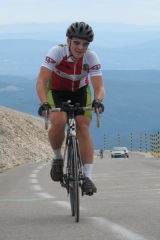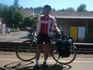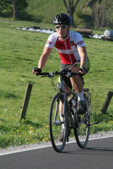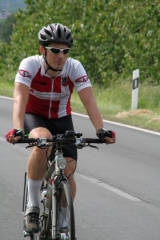 Armins Radsportgeschichte Ich bin seit 1999 regelmäßig mit dem Fahrrad unterwegs (seit 2002 auch auf dem Rennrad) und bin mittlerweile schon über 200 Marathonstrecken gefahren. Im Durchschnitt fahre ich ca. 20000 km pro Jahr, am meisten waren es 25200 km im Jahr 2004. Das Fahrrad ist für mich auch Hauptverkehrsmittel, mit dem ich z. B. auf dem Weg zur Arbeit mehrere tausend Kilometer pro Jahr zurücklege. In den letzten Jahren war ich oft als Tourenführer für den RV Pfeil Tübingen unterwegs, auch auf längeren Strecken. Neben 3 Alpentouren mit Etappen auf Transalp-Niveau habe ich jeweils an Fronleichnam 2006 die Langstrecke Tübingen - Monthey (400 km, 2400 Hm) und 2008 Tübingen - Comer See (369 km, 3900 Hm) geführt . Nach einigen großen Mehrtagestouren mit Gepäck vor allem in den Alpen, bei denen ich über 100 Alpenpässe befahren habe, war meine bisher größte Herausforderung die Teilnahme bei Paris-Brest-Paris 2007 (1228 km mit 10000 Hm), was ich erfolgreich in 57:07 h geschafft habe. Die wichtigsten Mehrtagestouren mit Gepäck 2000 Alpentour (13 Tage, 2170 km, 40000 Hm) 2001 Tour de France (18 Tage, 4094 km, 35000 Hm) 2002 Tübingen-Gardasee-Wallis (6 Tage, 1180 km, 20300 Hm) 2003 Tübingen-Venedig-Tübingen (11 Tage, 2267 km, 28000 Hm) 2004 Tübingen-Alpe d´Huez-Tübingen (10 Tage, 1960 km, 31300 Hm) 2005 Deutschlandtour (15 Tage, 2949 km, alle Bundesländer und 7 Nachbarländer) 2009 Deutschlandtour Mittelgebirge (9 Tage, 2097 km, 33400 Hm) Tagestouren und Radmarathons 2000 Erste 300er Tagesstrecken (Mit Gepäck auf Radtouren nach Rügen und Wien) 2001 Erster offizieller Radmarathon Schwobaland Extrem 230 km, 3600 Hm Erste 400er Tagesstrecke (402 km Privattour in 14 h Fahrtzeit mit Trekkingrad) 2003 Alpenbrevet Challenge 266 km, 6700 Hm (13:00:20) 2004 Alpenbrevet Challenge 266 km, 6700 Hm (11:56:53) Schwobaland 400 (460 km mit Hin-/Rückfahrt zum Start) 2005 Fichkona 601 km, 3400 Hm unter 22 h (Gruppe 1) 2006 Tübingen-Monthey 400 km als Tourenführer 2007 Paris-Brest-Paris 1228 km, 10000 Hm in 57:07 h Als Qualifikation Brevetserie 200, 300, 400 und 600 km 2008 Tübingen-Comer See 369 km als Tourenführer Rennrad-Alpentour als Tourenführer (1341 km mit 25200 Hm in 9 Tagen) 6 Radmarathons (alle mit Trekkingrad, u. a. Supercup Bimbach und Ötztaler Radmarathon mit jeweils sehr anspruchsvoller Fahrradanfahrt mit Gepäck) 2009 Brevetserie 200, 300, (200+) 400 und 600 km (mit Trekkingrad) |