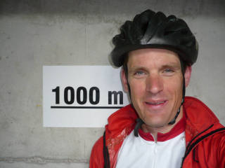 Unten empfängt uns der Stelvio gleich mit kräftigem Regen, aber bergauf macht mir das wenig aus. Ich überhole gleich einige Fahrer und es läuft ganz gut. Der Regen hört auf und im oberen Teil scheint die Sonne. Ich sehe etwas hinauf zu den schneebedeckten Gipfeln der Ortlergruppe und es ist eine wahre Freude die 48 Kehren des Stilfser Jochs hinauf zu fahren. Oben werde ich von meinen Begleitern mit der Nachricht überrascht, dass ich als Siebter die Passhöhe erreicht habe. Ob ich in der Euphorie vielleicht doch etwas zu schnell gefahren bin? Egal, das Bergauffahren ist im Gegensatz zum Abfahren auch meine Stärke. Und die Abfahrt nach Bormio geht es trocken hinunter, das ist auch schon etwas wert, nur in den dunklen Tunnels muss man etwas aufpassen.