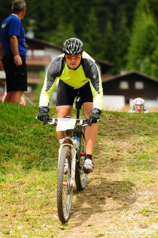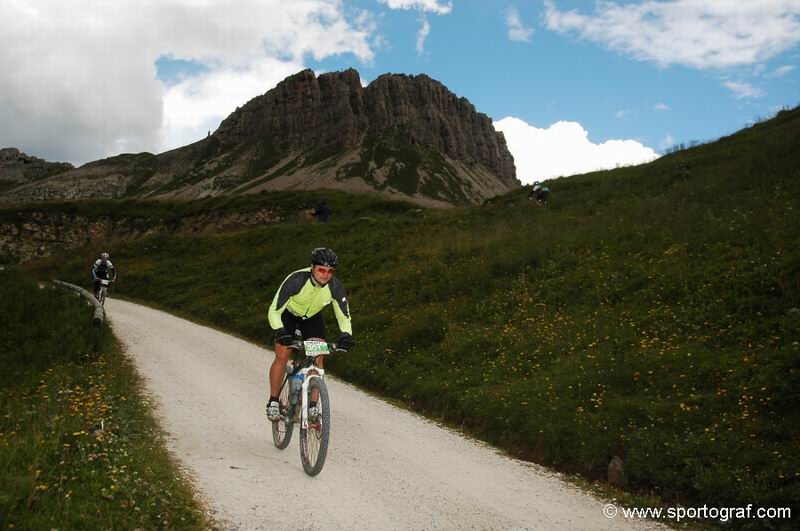 Anfangs noch angenehm auf Teer und Schotter, später immer wieder so steil, dass wir selber und alle um uns herum lange Zeit schieben müssen. Der Anstieg erscheint schier endlos, selbst die letzten Meter sind nicht fahrbar. Die Freude über die beginnende Abfahrt währt nur kurz, ein flaches Zwischenstück mit lauter kleinen Anstiegen lässt mich Uli Stanciu verfluchen. Endlich ist die Marter vorbei und ich erkenne den zweiten Teil der Abfahrt durchs Skigebiet wieder, 2009 bin ich ihn allerdings hochgefahren. St. Vigil ist ein toller Etappenort, alles dicht beieinander und voller Zuschauer. Als Schmankerl bekommen wir Camp-Schläfer auch noch Gutscheine für ein Hotelfrühstück am nächsten Morgen.
