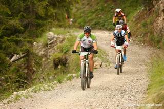 Anfangs noch angenehm auf Teer und Schotter, später immer wieder so steil, dass wir selber und alle um uns herum lange Zeit schieben müssen. Der Anstieg erscheint schier endlos, selbst die letzten Meter sind nicht fahrbar. Die Freude über die beginnende Abfahrt währt nur kurz, ein flaches Zwischenstück mit lauter kleinen Anstiegen lässt mich Uli Stanciu verfluchen. Endlich ist die Marter vorbei und ich erkenne den zweiten Teil der Abfahrt durchs Skigebiet wieder, 2009 bin ich ihn allerdings hochgefahren. St. Vigil ist ein toller Etappenort, alles dicht beieinander und voller Zuschauer. Als Schmankerl bekommen wir Camp-Schläfer auch noch Gutscheine für ein Hotelfrühstück am nächsten Morgen.