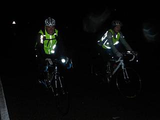 Die letzten 50 km werden noch zur intensiven Trainingseinheit für den Fleche. Bei zunehmender Dämmerung setzt bald Regen ein und wir fahren bei teils kräftigem Gegenwind dem Ziel entgegen. Die 320 km sind geschafft (für Bianca, Dieter, Jochen und Jürgen das erste Brevet) und die warme Suppe im Ziel willkommen.