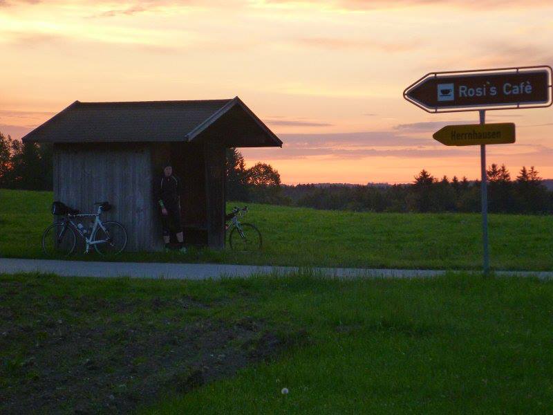 Gerade mal knappe 100 Kilometer haben wir zwischen der Pizzeria in Eggstätt und einem Bushäuschen in Hofstätt zurücklegen können. Auch die anderen Radler scheinen zu rasten, denn während unserer einstündigen Pause sehe ich keinen unserer Truppe passieren. Und die, die wenig oder gar keine Pause machen, sind mittlerweile eh schon viel weiter. Der erste erreicht nach gerade mal 23 Stunden um 7 Uhr morgens das Ziel in Osterdorf. Respekt!