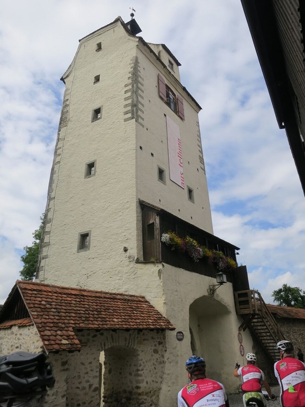 Der Regen lies nach, und so radelte die Gruppe tapfer Richtung Isny –allerdings war dies immer wieder mal der Tag des Schotters oder der Baustelle. Erst musste Armin die Strecke ändern, und dann kamen noch an ein paar Stellen unerwartet schlechte Straßenverhältnisse dazu. Aber die Gruppe fand immer eine fahrbare Alternative oder speedwayte sich tapfer durch. Belohnt wurden wir mit einer Stadtrundtour durch das schöne Isny und der Rückfahrt auf einem Hochplateau mit traumhafter Aussicht und Sonnenschein